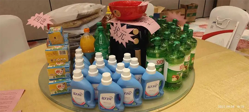 恭喜余總喜獲2022年?duì)钤褰鸹ǎㄍ踔型跫t包好運(yùn)收藏留下,紅包666讓給小狀元阿珊),上圖為王總為小狀元沈曉珊頒獎(jiǎng)。