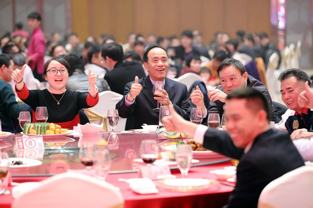 余茂清董事長攜茂榮全體領導上臺祝酒,祝愿茂榮集團越來越輝煌